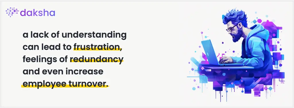 - Missed Insights and Employee Turnover: At Orion, two distinct behaviors emerged among the employees post-AI integration. Those who didn’t fully grasp AI failed to learn from its suggestions, missing out on opportunities to refine their approach. Moreover, a lack of understanding can lead to frustration. When AI systems seem to take over tasks without employees comprehending the how and why, it can result in feelings of redundancy and even increase employee turnover.